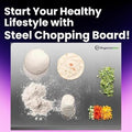 Product Description: Stainless Steel Chopping Board (35x31cm) Package Contains: It has 1 Piece of Material: Stainless Steel Color: As per availability Special features Non porous, Built in Groove Dimension: (35x31cm) Weight: 450gm